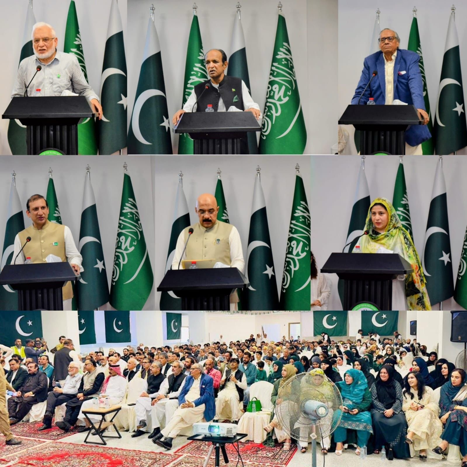 شهد الحفل أيضًا كلمات من شخصيات بارزة في الجالية الباكستانية، واختُتم بتقطيع كعكة الاحتفال وتوزيع الهدايا على الأطفال. وتخلل الحفل ابتهالات ودعوات خاصة من أجل ازدهار ورفاهية باكستان والمملكة العربية السعودية، إلى جانب الدعاء لأهالي كشمير وفلسطين.