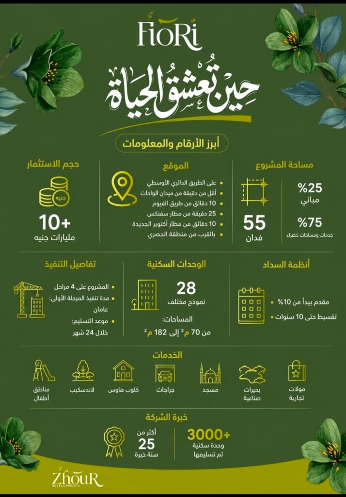 في خطوة تعكس التوسع القوي في السوق العقاري المصري، أطلقت شركة زهور للتطوير العقاري أحدث مشروعاتها “فيوري كومباوند” (Fiori Compound) باستثمارات تتخطى 10 مليارات جنيه، ليقدم نموذجًا متكاملًا يجمع بين السكن الراقي والفرص الاستثمارية الواعدة، في واحدة من أهم مناطق التوسع العمراني بغرب القاهرة.