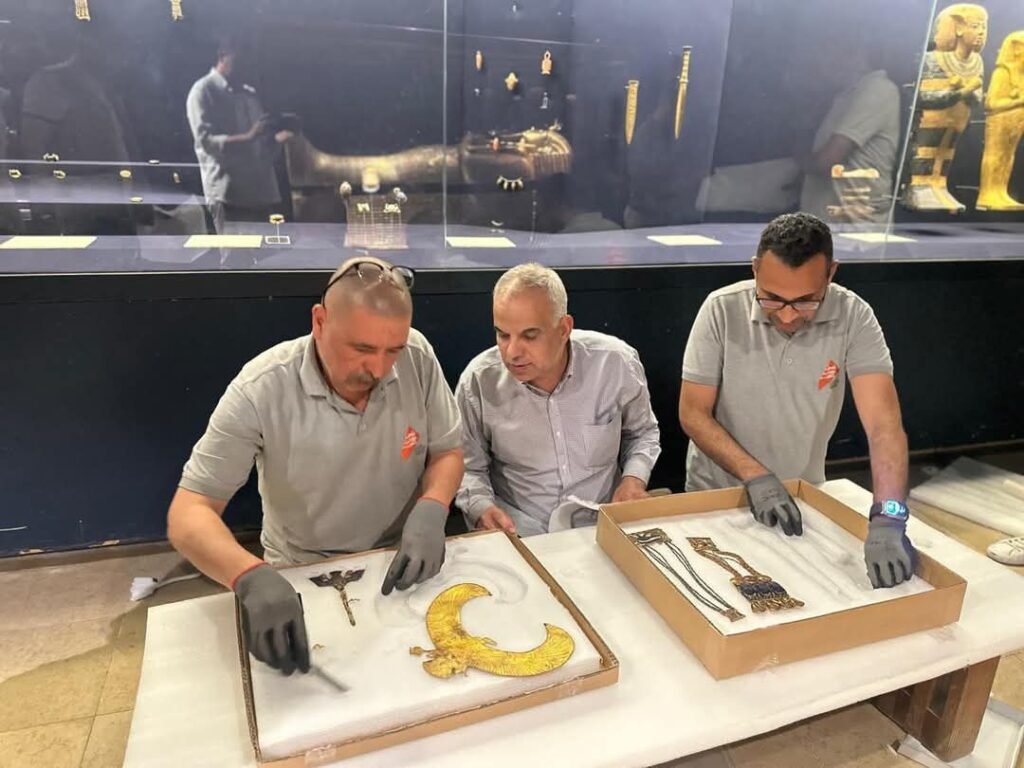 وأوضح أن فريق الترميم بالمتحف سيقوم بأعمال الصيانة والترميم اللازمة، تمهيداً لوضع القطع داخل فتارين العرض الدائم المخصصة لها، بما يضمن عرضاً متكاملاً يليق بمكانة هذا الملك الشاب وتاريخه.